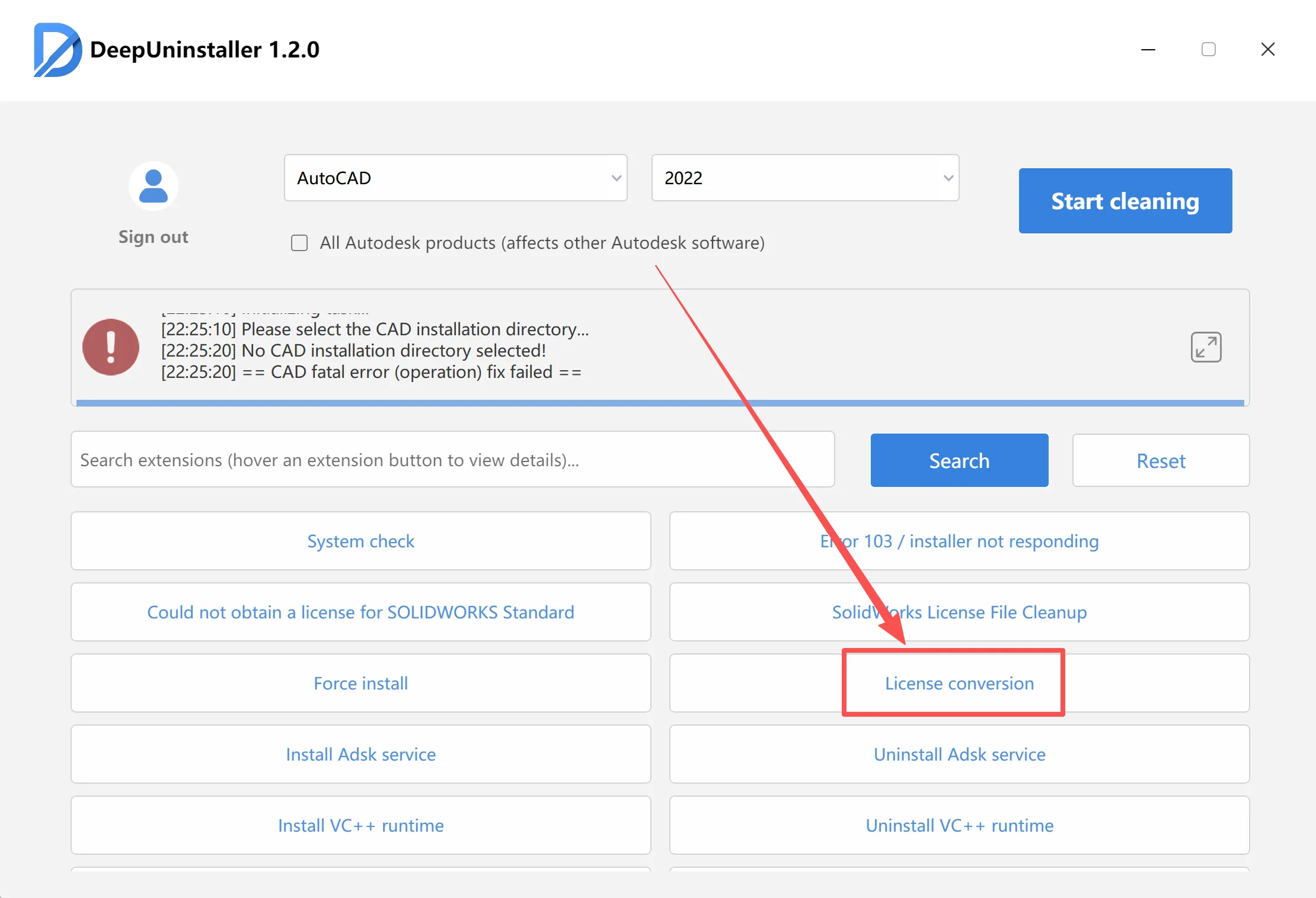 The primary solution involves using the “License conversion” extended function within the deepuninstaller tool to reconfigure licensing components.