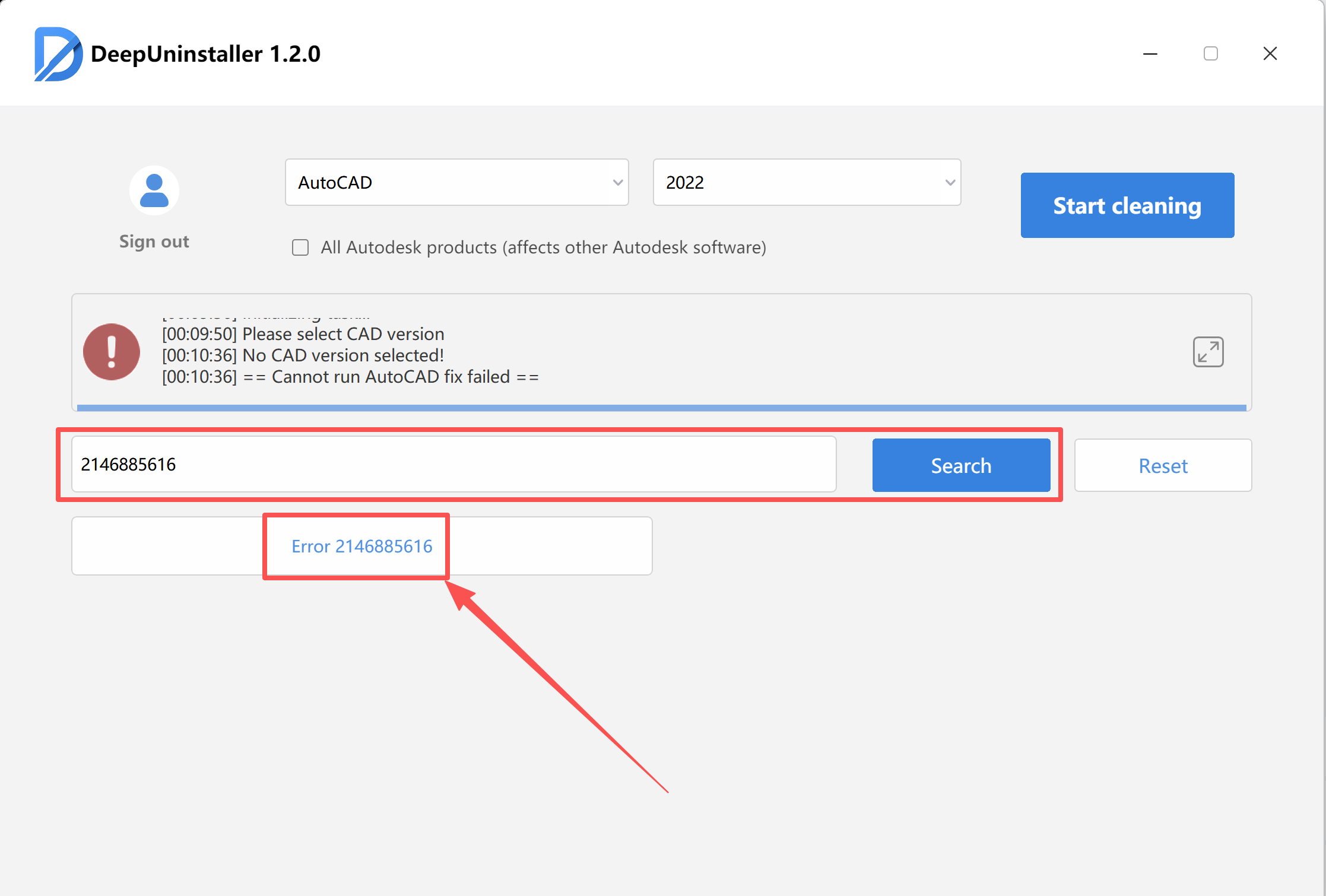 2146885616and then click the Search button. - Click the button that appears in the results. A prompt will instruct you to restart your computer.Image PlaceholderAfter restarting your system, click the same button again within deepuninstaller.
