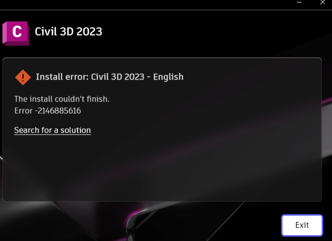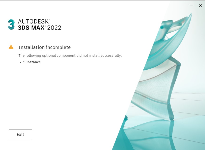 When installing a newer version of 3ds Max, the installation fails with error code 2146885616, and a message indicates that optional components, such as “Substance,” were not successfully installed.