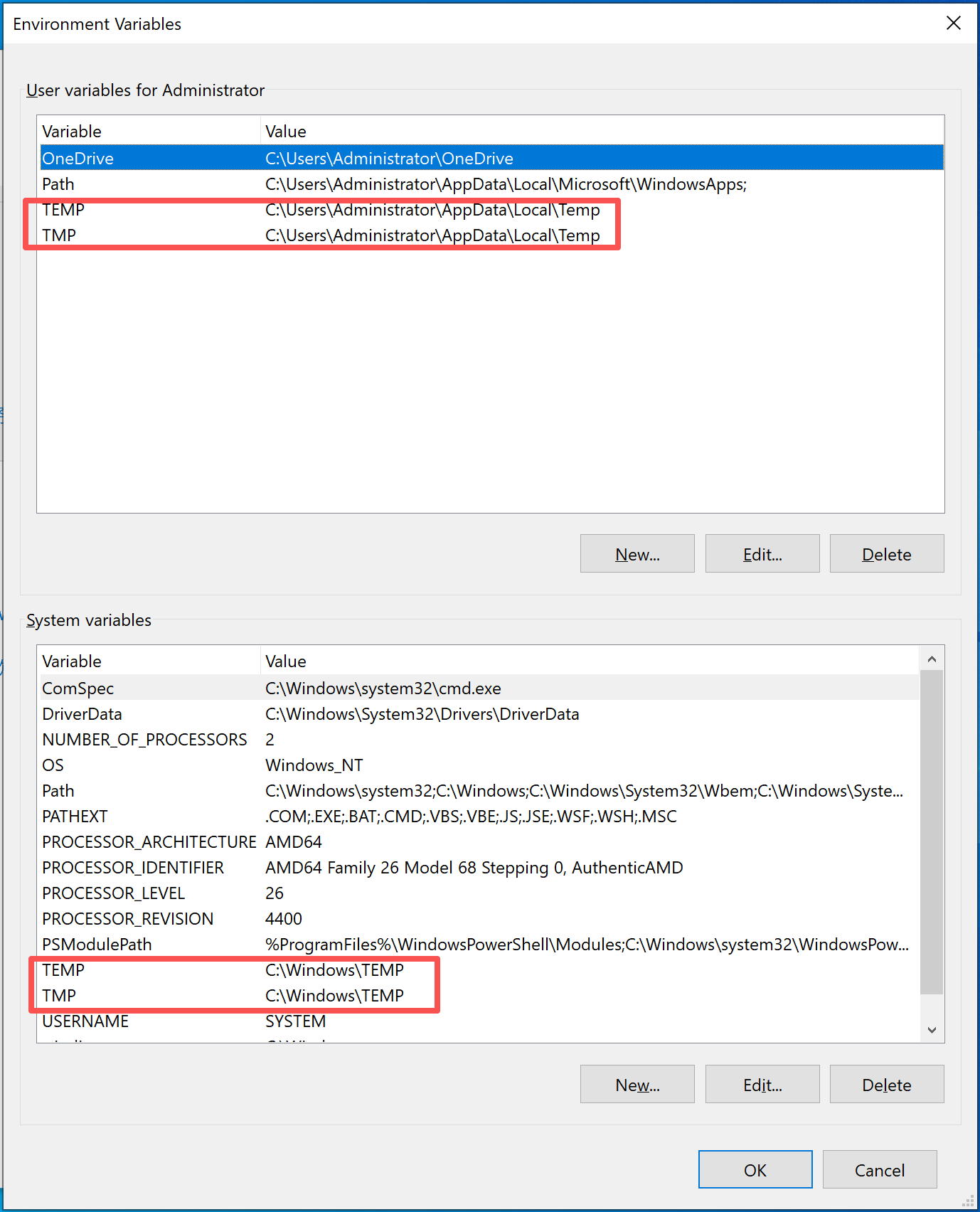 - Open System Environment Variables and verify if two specific paths (as shown in the System Environment Variables window) exist.