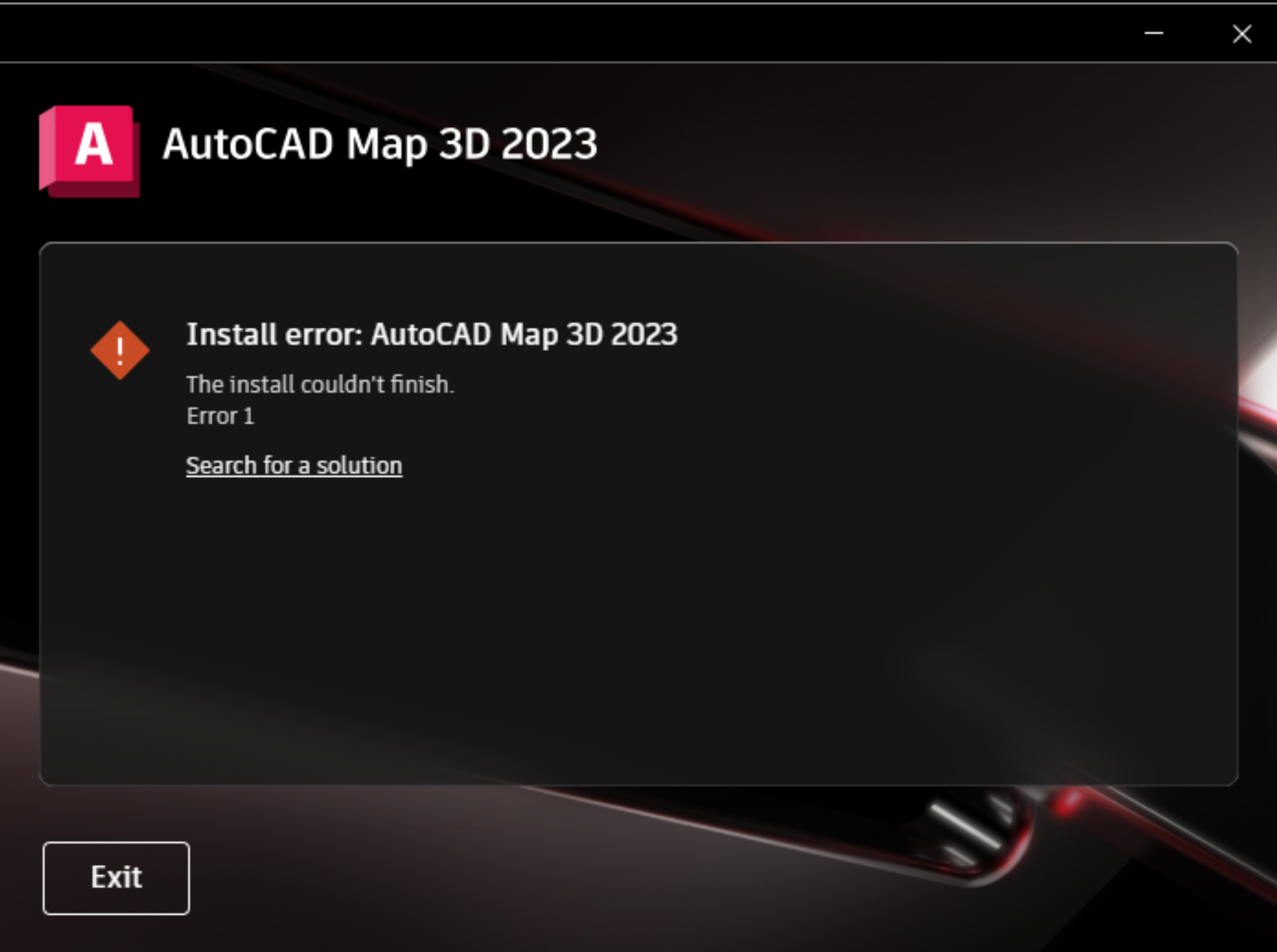 When attempting to install Autodesk products, the installation fails with “Error 1” or “Installation cannot be completed.”