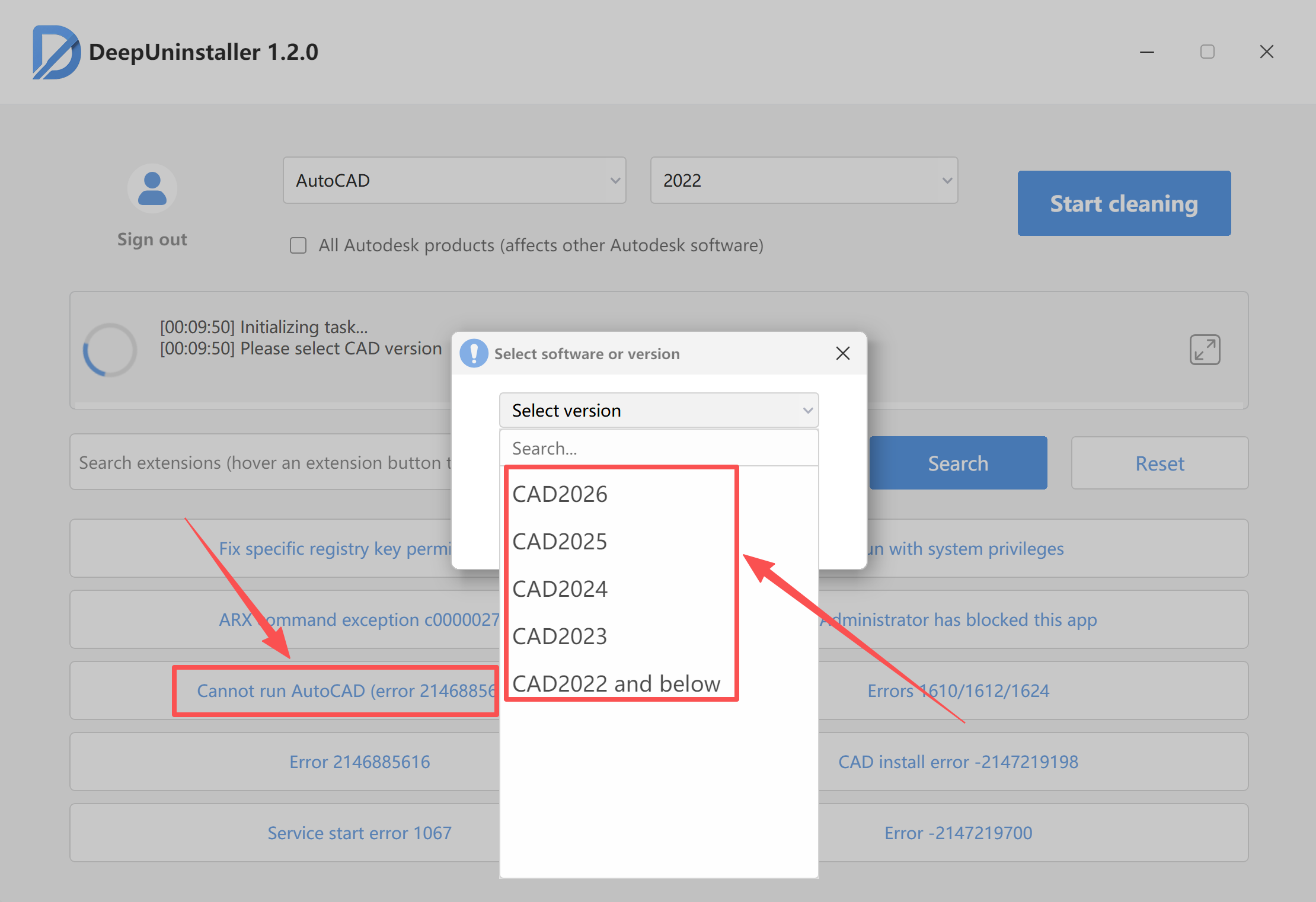 - Enter “Cannot run AutoCAD (error 2146885616)” in the search bar and click Search.