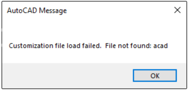 This message may be followed by a dialog box stating that the customization file cannot be found: