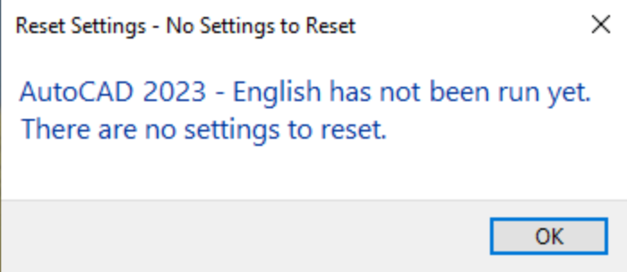 Attempting to reset AutoCAD to its default settings might also generate the following dialog box: