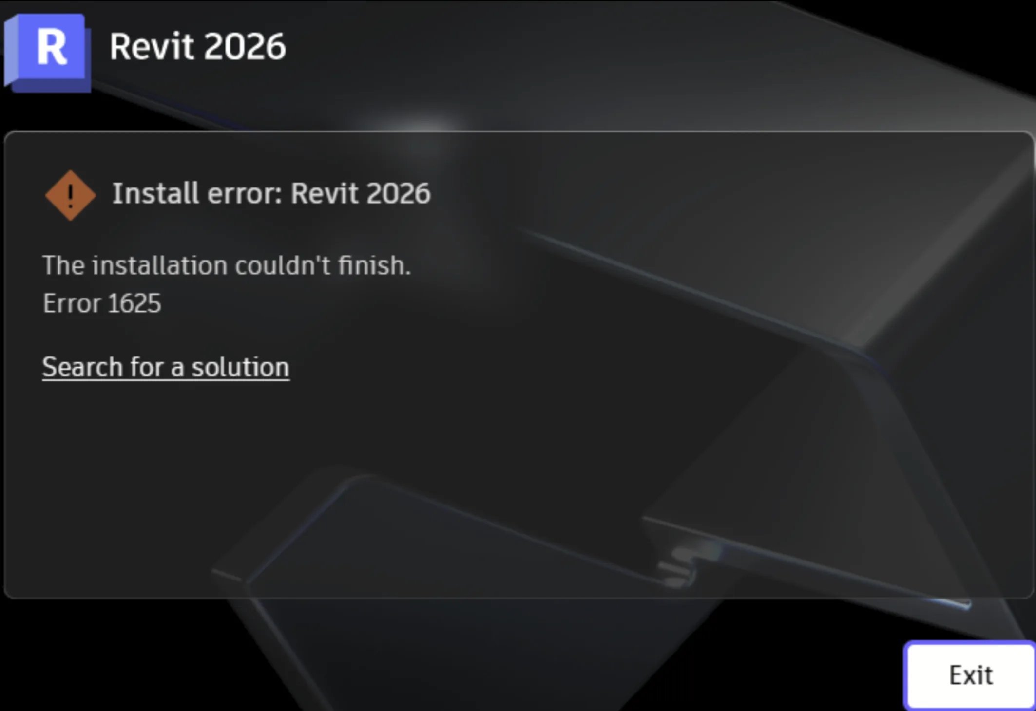 When installing Autodesk software: “The installation couldn’t finish. Error 1625”