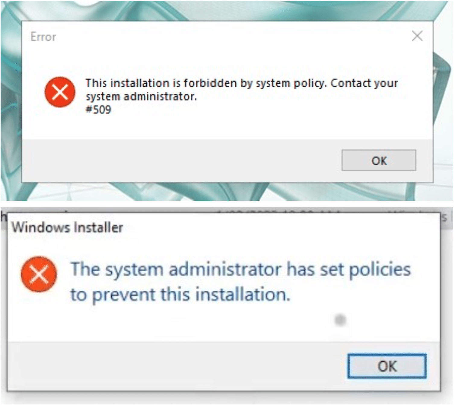 The system administrator has set policies to prevent this installation.