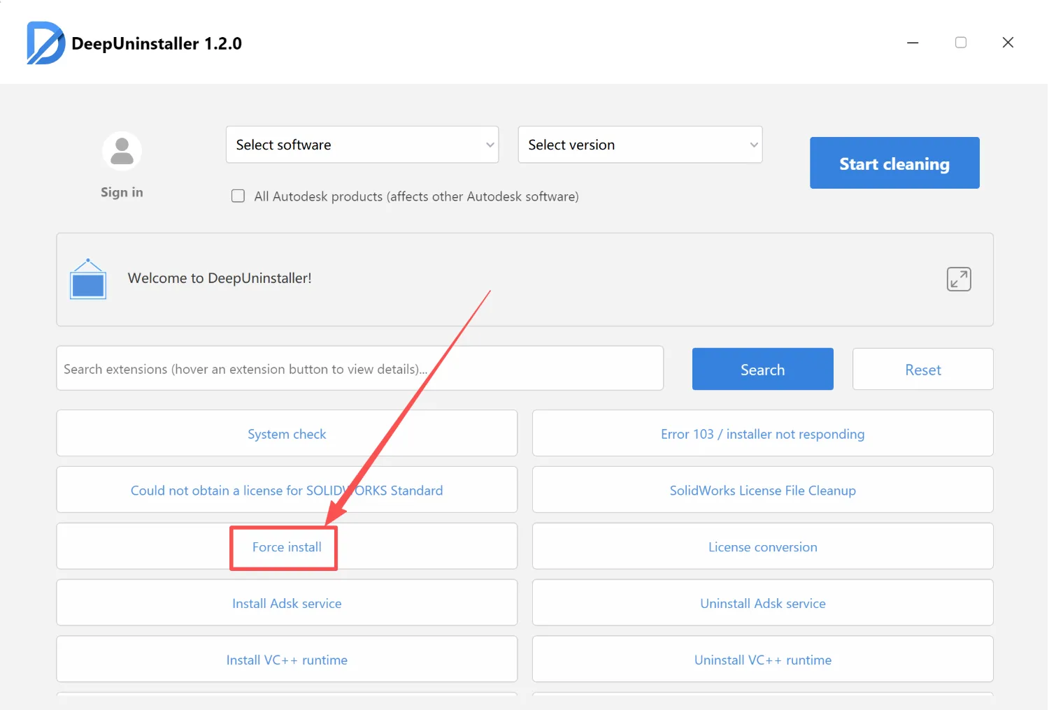 - In deepuninstaller, navigate to the ‘Extensions’ section and click the ‘Force install’ button.