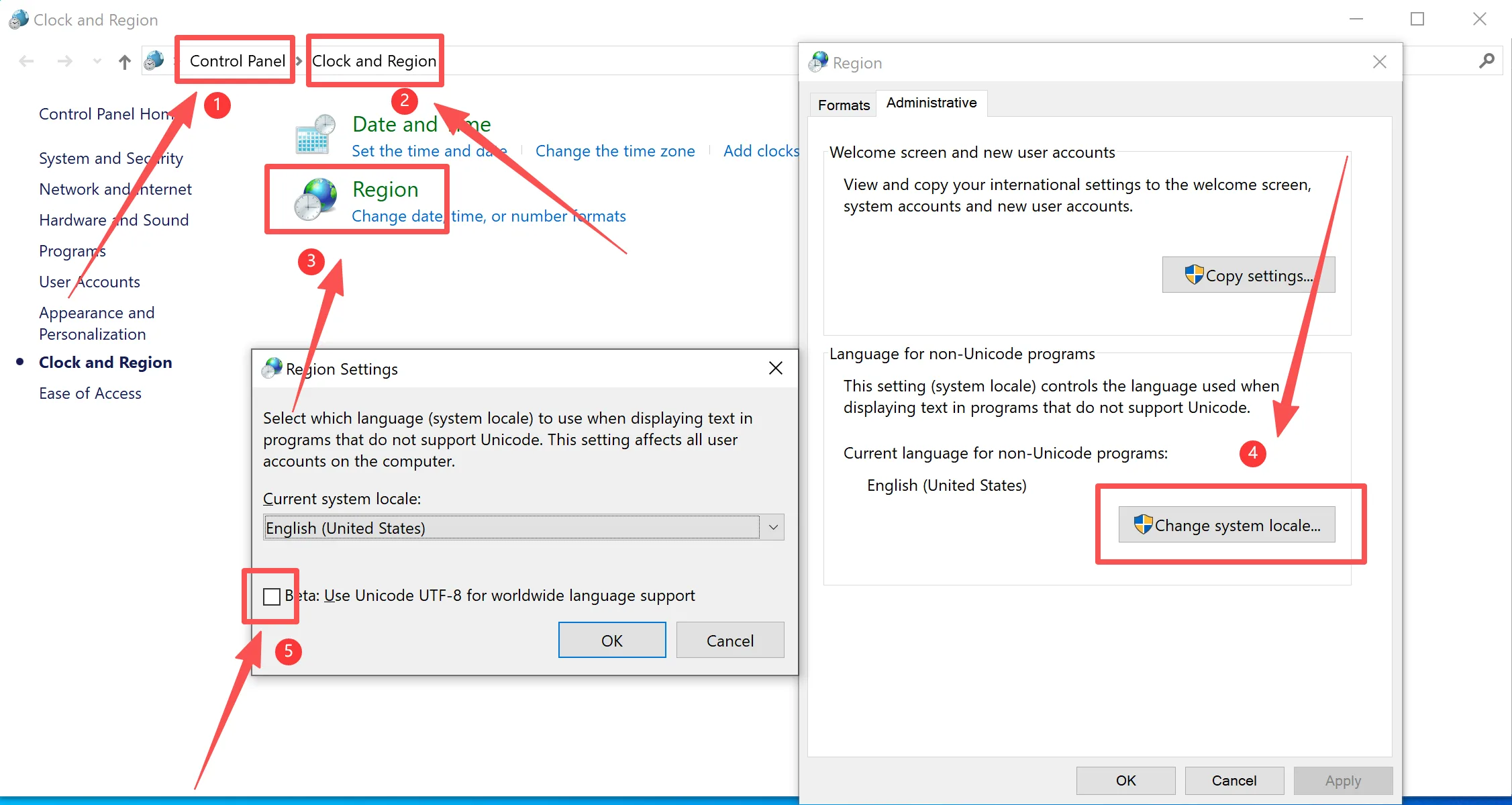 - Adjust Regional Settings:After restarting your computer, open the WindowsSettingsinterface.Image PlaceholderNavigate toTime & Language.Image PlaceholderIn the “Date & Time” section, select theRegionoption.Image PlaceholderUnder “Regional format data”, uncheck the option“Use Unicode UTF-8 for worldwide language support”.Image PlaceholderConfirm these changes.
